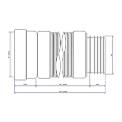 Flexible, 90°, space saving pan connector. Adjustable length from 400-730mm. Flexible section is reinforced with stainless steel. 1¼” Unifix compression fitting for waste pipe to save space under the sink. Suitable for 110mm (4″) plastic, cast iron or clay pipework.