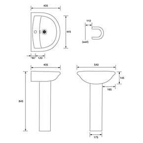 Contemporary, practical and simple basin pack. Includes basin and full pedestal.