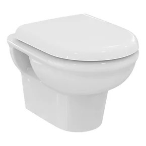 Smooth contemporary lines, ideal for modern bathrooms. Easy to clean, affords extra space and is water saving. Soft-close seat and chrome dual-flush plate included.
