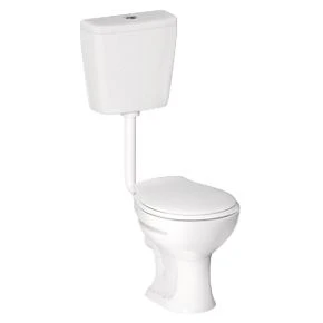 Traditional style toilet, ideal for use in recreational facilities. Visible pipework connects to a dual flush cistern fitted to the wall. Offers 6 litre full flush and 4 litre reduced flush.