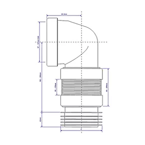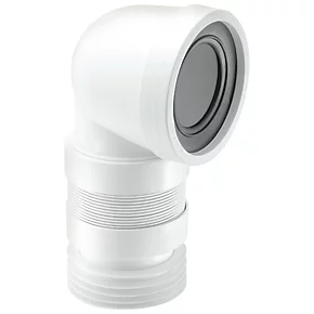 Polypropylene. Inlet suits all pan spigots. Outlet fits 4″ (110mm) inside diameter PVC-U and cast iron soil pipe. Enables easy installation of WC pans in awkward situations.