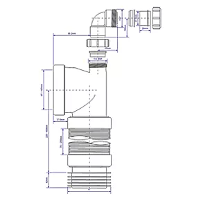 Polypropylene. Inlet suits all pan spigots. Outlet fits 4″ (110mm) inside diameter PVC-U and cast iron soil pipe. Supplied with blanking cap.