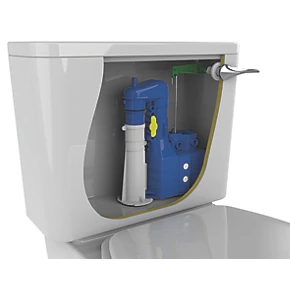 2-part duo-flush siphon. Easy to install and can be serviced without disconnecting water supply or dismantling cistern. Fits most lever-operated cisterns. Suitable for low level installations. Dudley Duoflush delivers a water-saving reduced flush when lever is held down and a full flush when lever is depresssed and released.