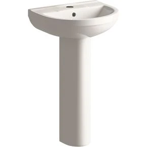 Contemporary basin with full pedestal. Features a single tap hole compatible with a basin mixer. Easy to clean glazed finish, the perfect feature for any family bathroom.
